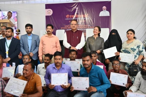 देहरादून : प्रधानमंत्री नरेन्द्र मोदी के वर्धा महाराष्ट्र में ‘पीएम विश्वकर्मा’ योजना की पहली वर्षगांठ कार्यक्रम का निरंजपुर स्थित राष्ट्रीय कौशल प्रशिक्षण संस्थान देहरादून में वीडियो कॉन्फ्रेसिंग के माध्यम से प्रसारण किया गया। कार्यक्रम में प्रदेश ग्रामीण विकास मंत्री गणेश जोशी वर्चुअल माध्यम से कार्यक्रम में जुड़े। इस अवसर पर ग्राम्य विकास मंत्री गणेश जोशी ने योजना के लाभार्थियों को प्रमाणपत्र वितरित किए तथा स्टोल का अवलोकन किया। इस दौरान उन्होंने परिसर पर रुद्राक्ष के पौधे का रोपण भी किया।