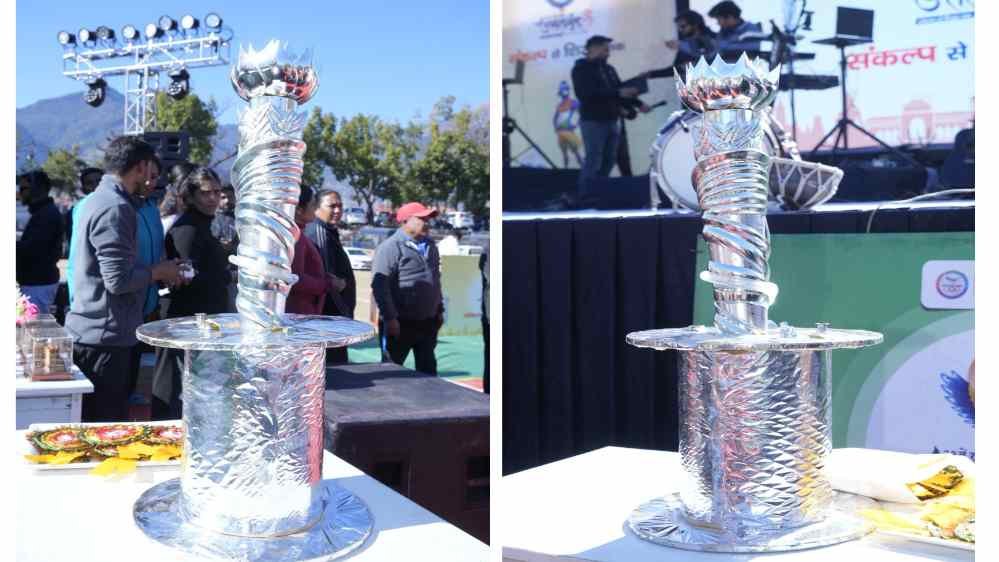 इसके शीश पर विराजमान है उत्तराखंड का पवित्र पुष्प ब्रह्मकमल, जो खिलाड़ियों के प्रबल उत्साह का प्रतीक है। इसे और भी विशेष बनाता है मशाल के भीतर बहता पवित्र गंगा जल, जो पर्वतों के बीच प्रवाहित होती हुई उत्तराखंड की प्राकृतिक सुंदरता और आध्यात्मिकता को दर्शाता है।